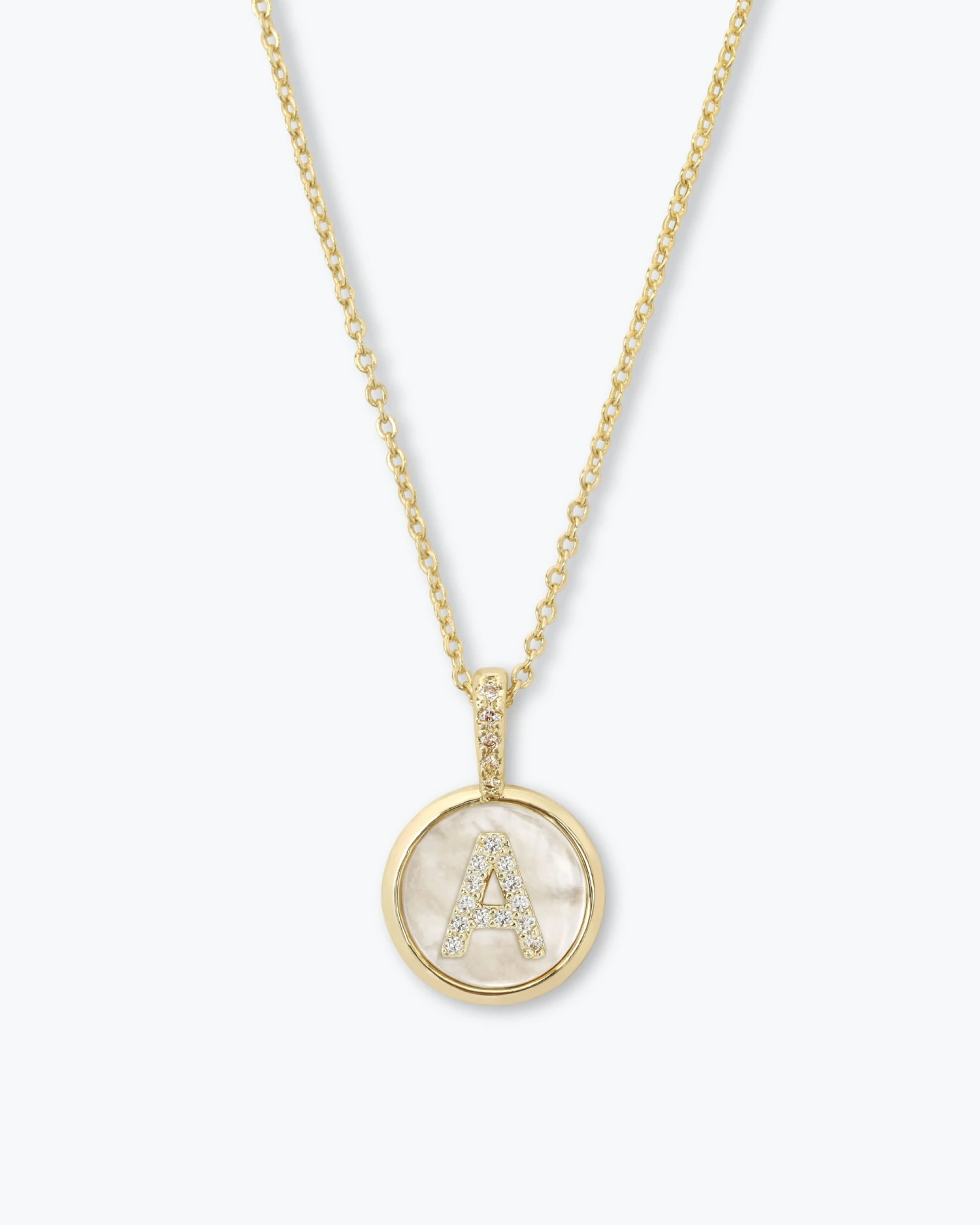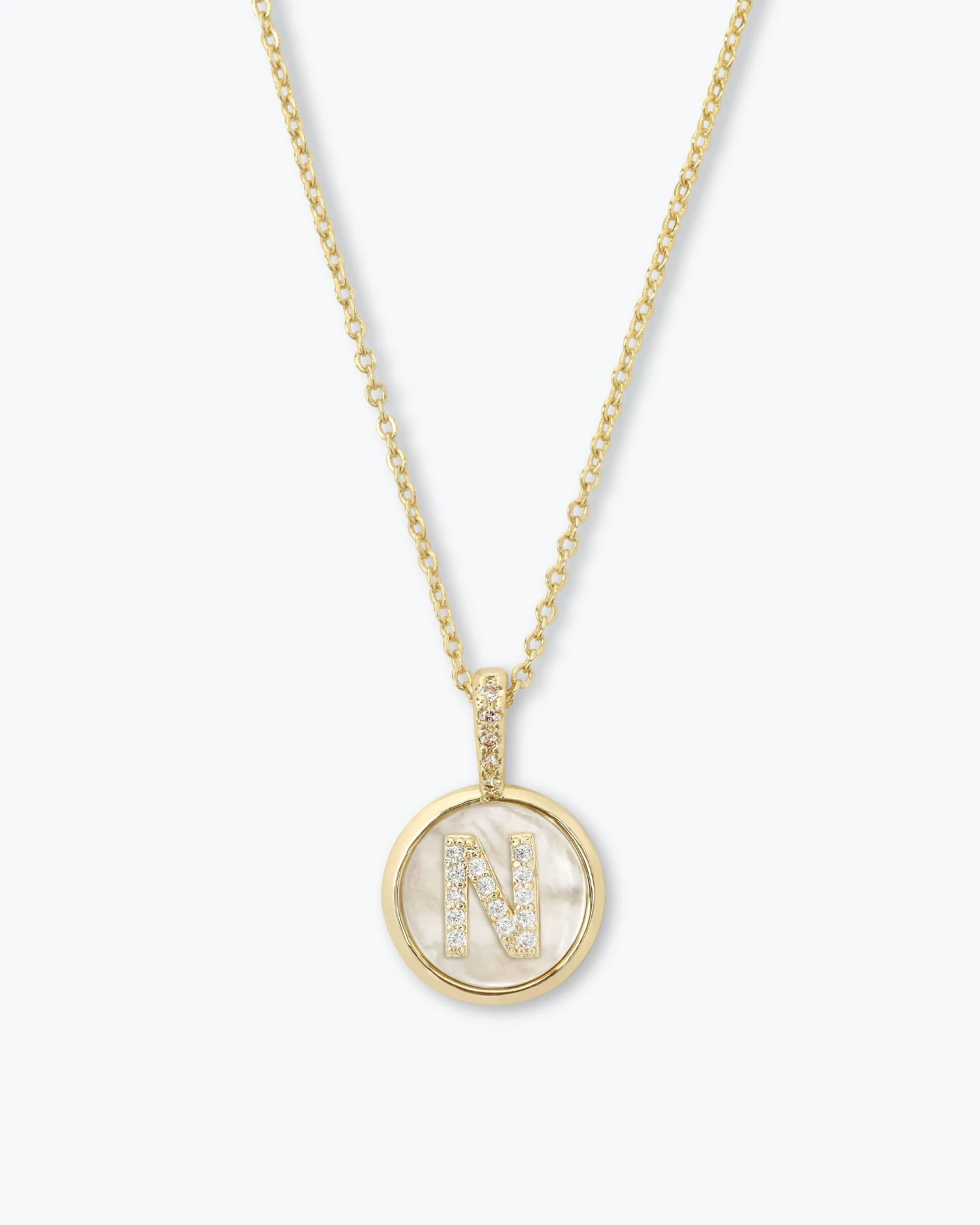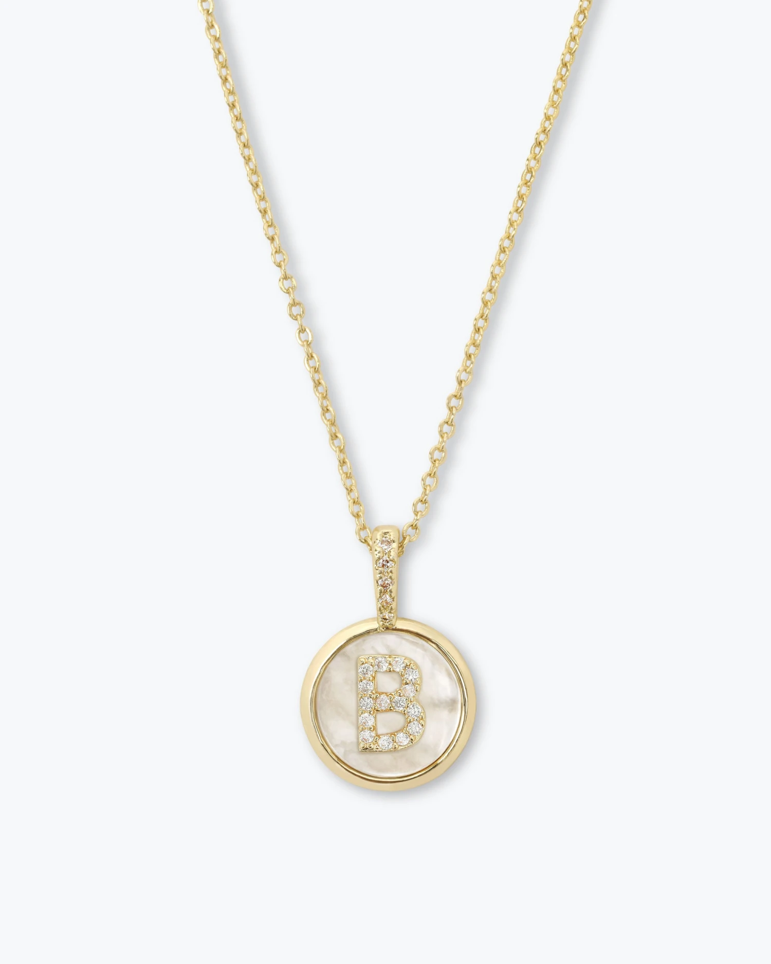Wear it your way. Like the larger Love Letters, our Baby Love Letters Medallion Necklace combines some of our favorite features— mother of pearl + pavé simulated diamond initials = We’re OBSESSED — and proves good things come in small packages.