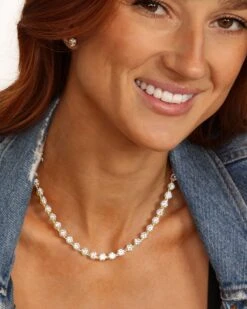 She’s An Icon Mama Tennis Necklace – Gold|White Diamondettes