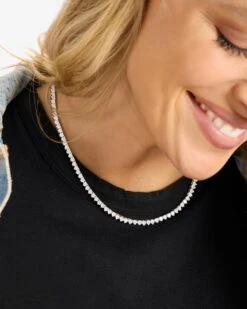 She’s An Icon Mama Tennis Necklace – Silver|White Diamondettes