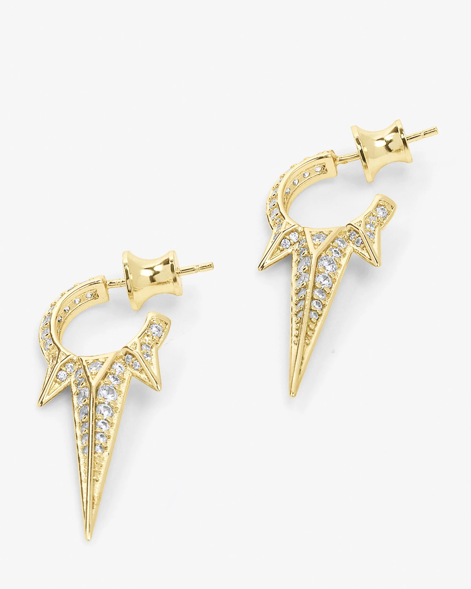 Always edgy, never fussy, Gabriella is THAT friend—the one who brings out your wild side. Inspired by our best-selling Gabrielle Spike Hoops these 18K gold plated triple spike versions are covered in diamondette spikes for an even bolder look!