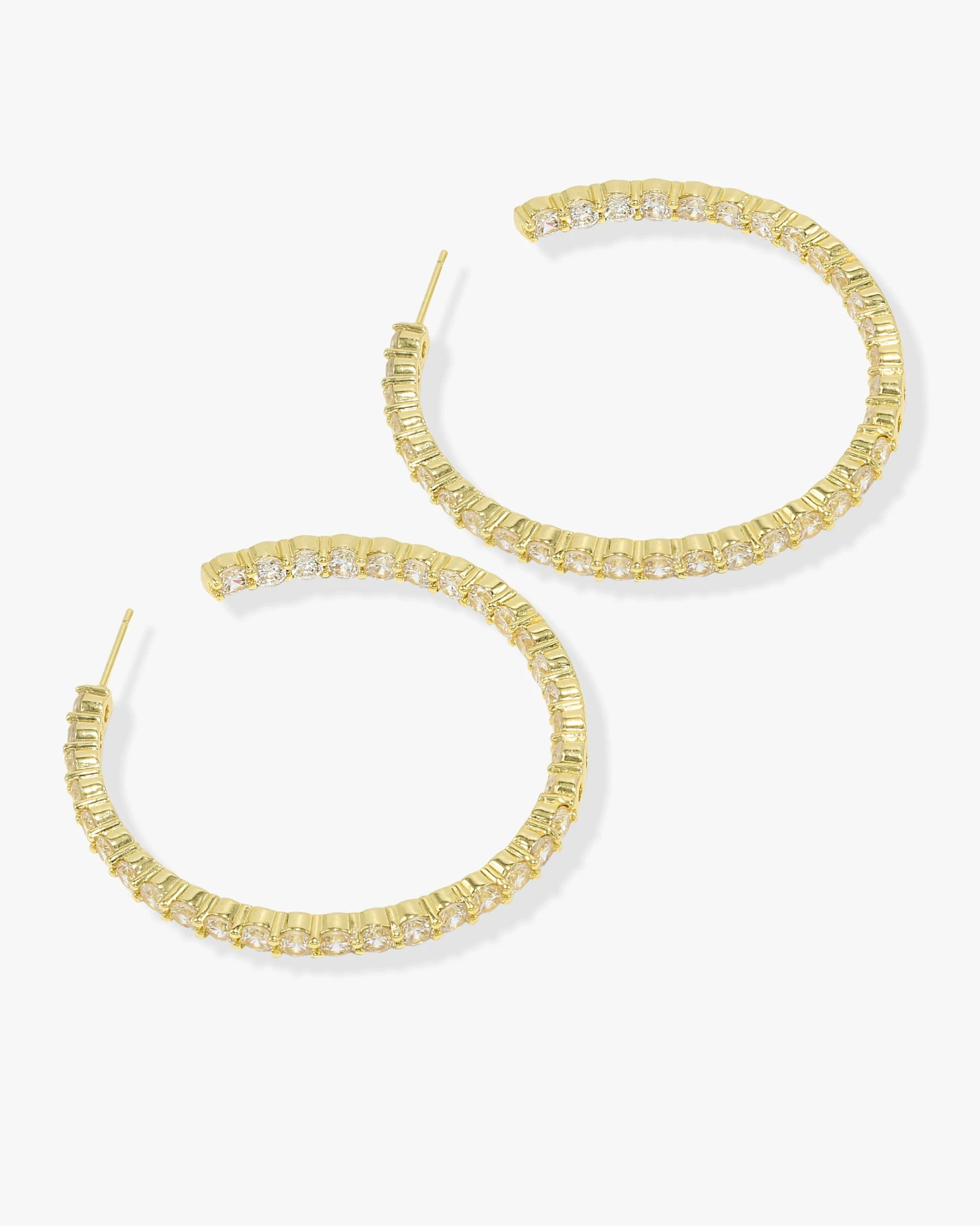 We LOVE our simulated diamonds. At any size the Heiress Hoops are easy and classy to put on and layer for a chic look. But at 2″, the Heiress Hoops are perfect for ANY occasion.