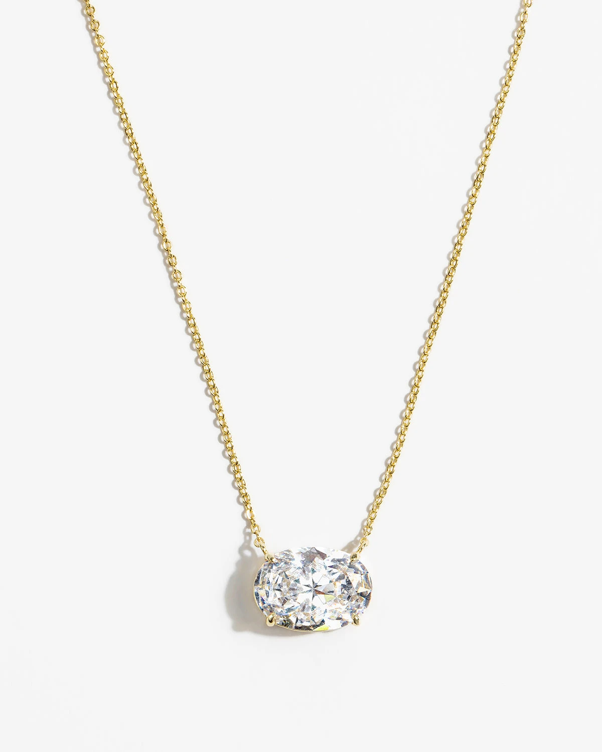 BIG DIAMOND ENERGY. Say “Hello Gorgeous!” to our hand-cut oval simulated diamond. This pendant necklace is the perfect go-to—every day—totally obsessed—never take it off piece.