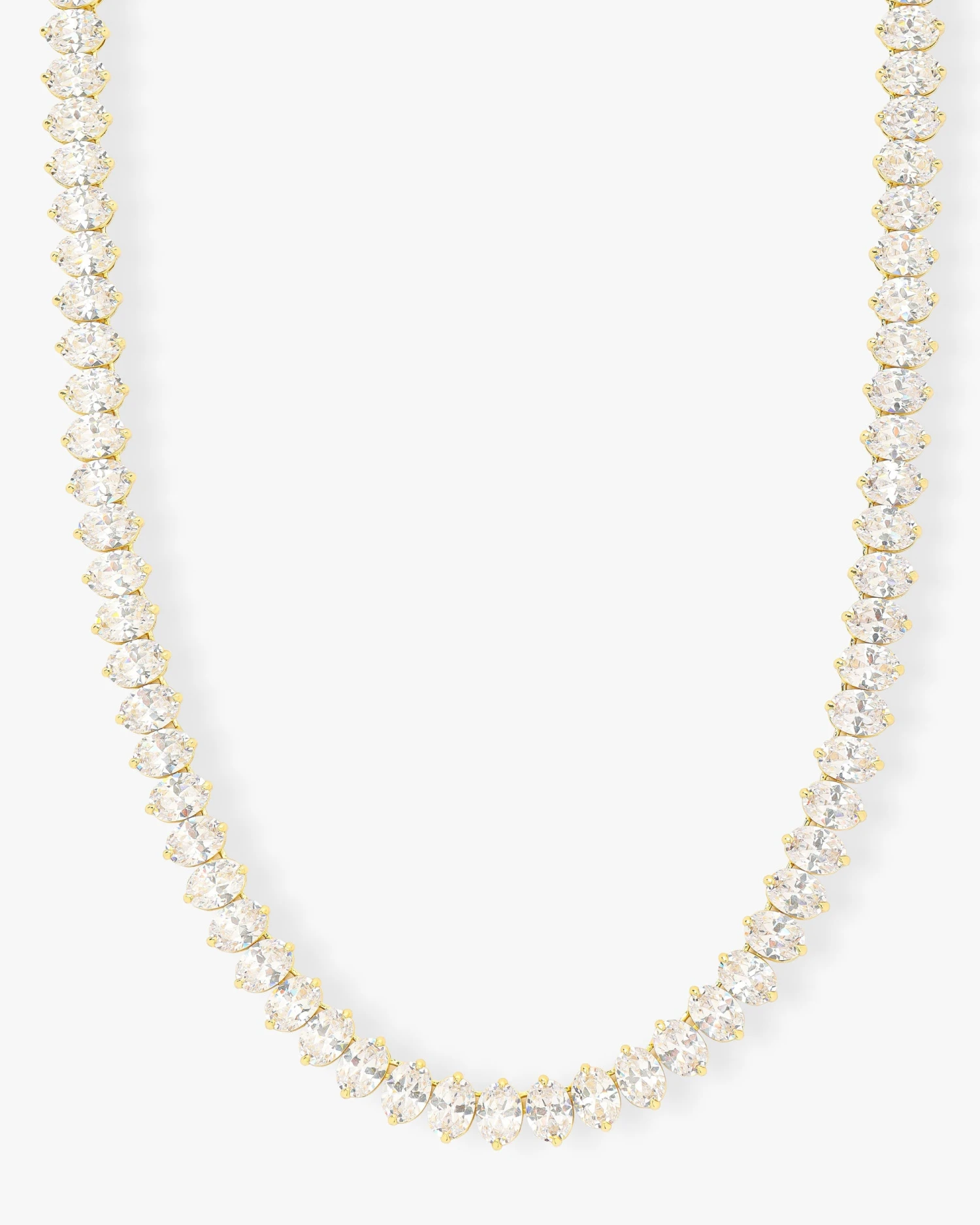 BIG DIAMOND ENERGY. Everything you love about the best-selling pendant necklace in the tennis necklace you NEED. With hand-cut oval simulated diamonds this is the perfect BIG go-to—every day—totally obsessed—never take it off tennis necklace.