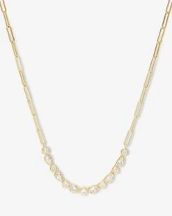 Vacation mode: on. A tennis necklace with a chain twist is a must have in any jewelry box. The Isla Samantha Tennis Necklace is glamour and comfort, perfect for those endless vacation days.