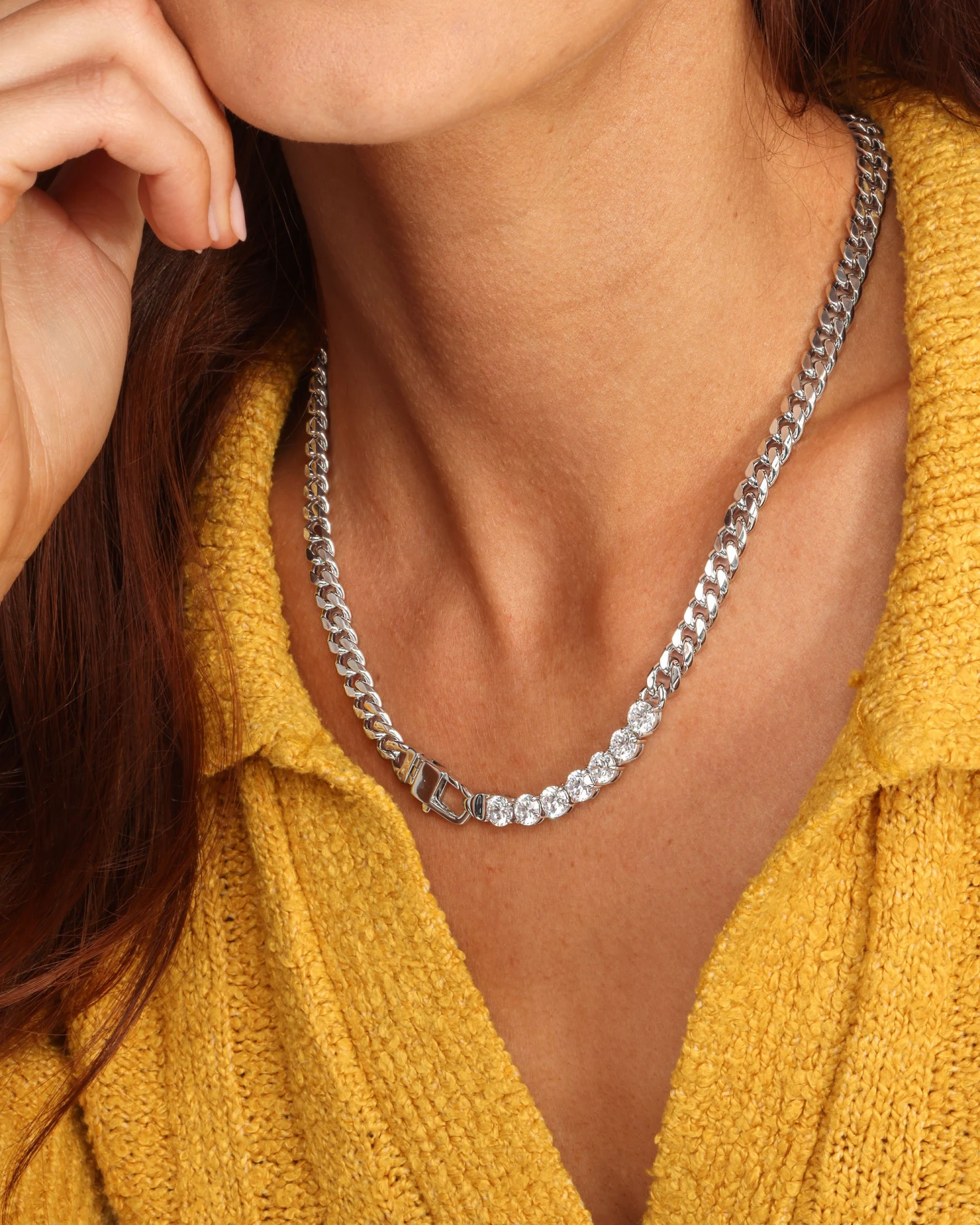 Chains + Diamonds = The Best of Both Worlds. Our best-selling Julian Cuban Chain Necklace becomes even more dazzling when simulated diamonds are added to the mix. Why? Because no one has ever been disappointed by adding diamonds.