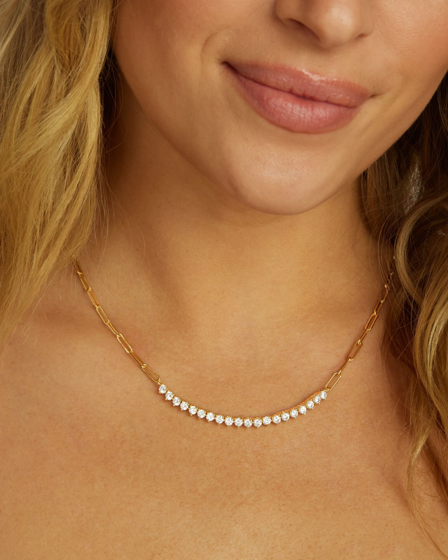 Is it a tennis necklace? Is it a chain? It’s both and it’s STUNNING. We combined our best-selling Not Your Basic Tennis Necklace with the forever favorite Samantha Chain to create your necklace layering secret weapon. No matter what else you’re stacking, it’s sure to fit in and stand out.
