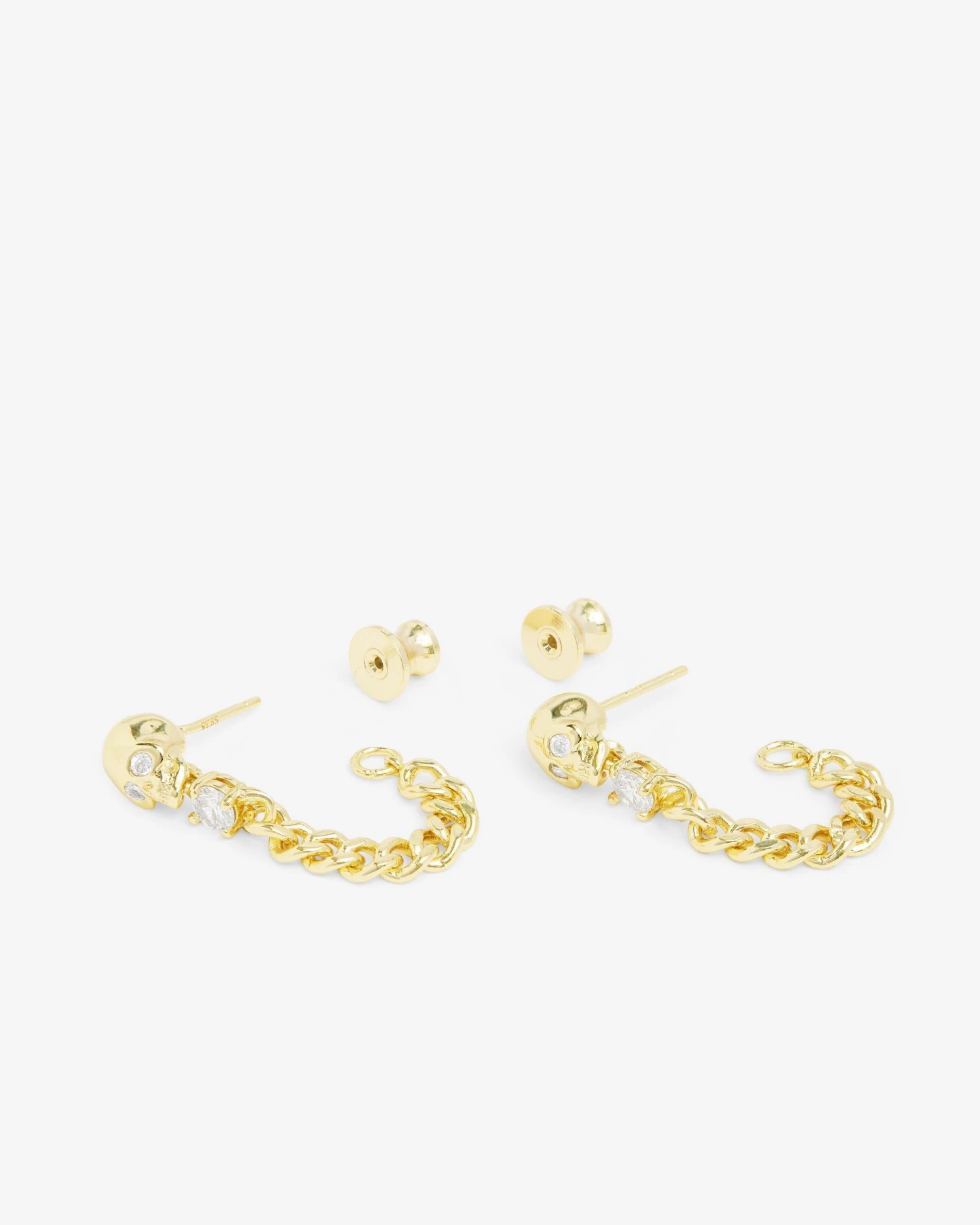 For the ones who ride for style and die for detail. These soft hoops with skull accents and simulated diamond add a subtle edge to your look. Effortlessly chic with a hint of rebellion.