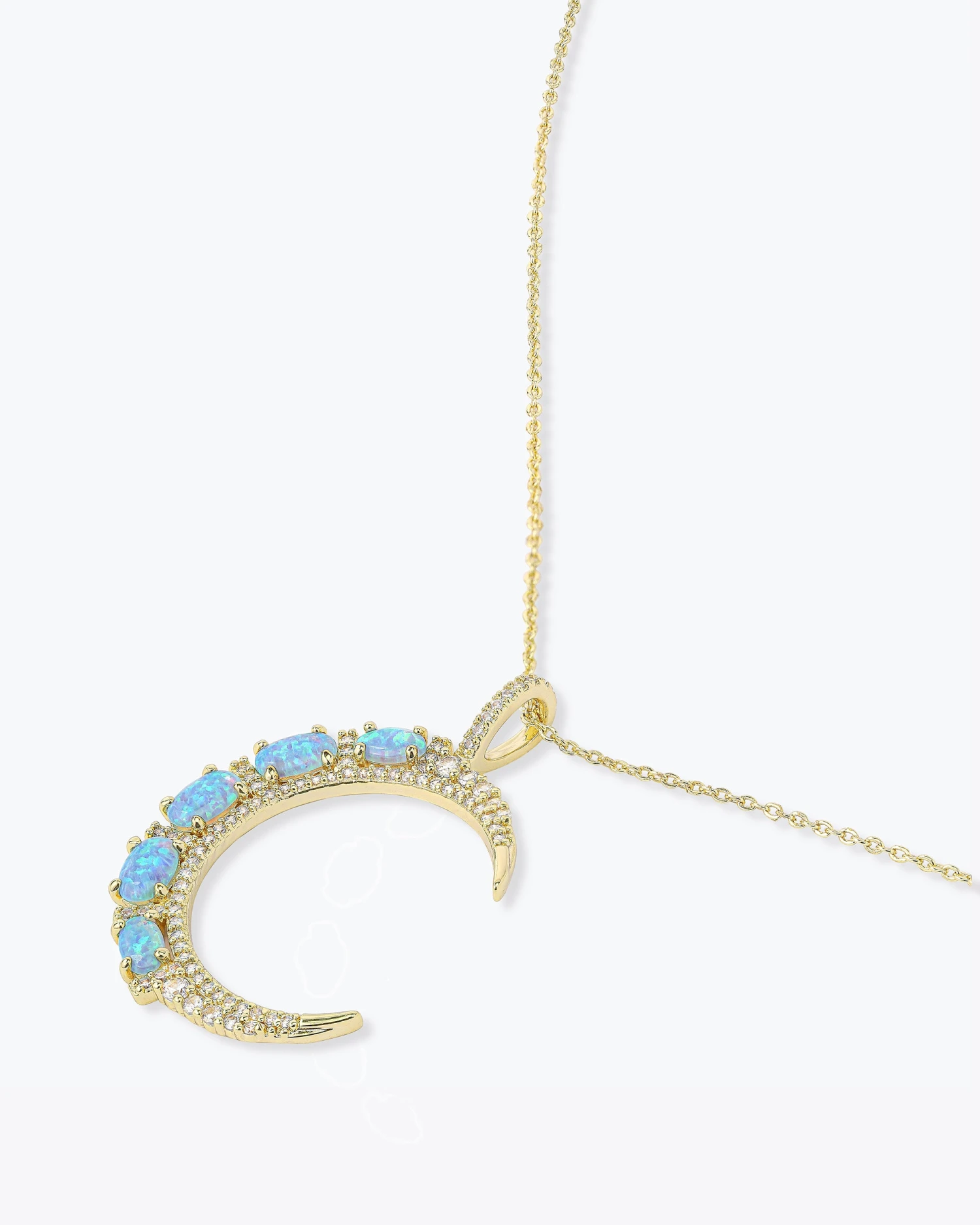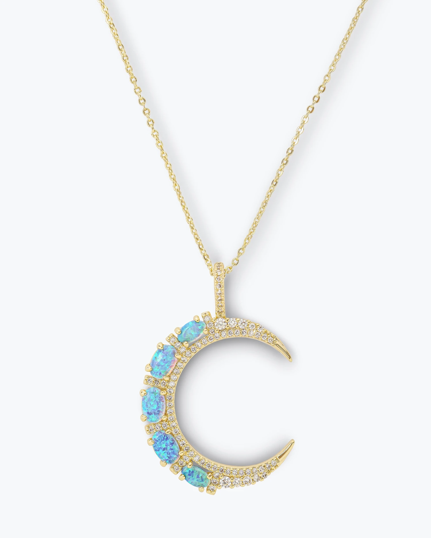 She shines, she’s unforgettable, and SHE’S AN ICON. A crescent moon formed from majorly mood-boosting prong-set graduated simulated blue opal and set off by a row of pavé, the She’s an Icon Blue Moon Necklace is the perfect way to glow like the moon, day or night.